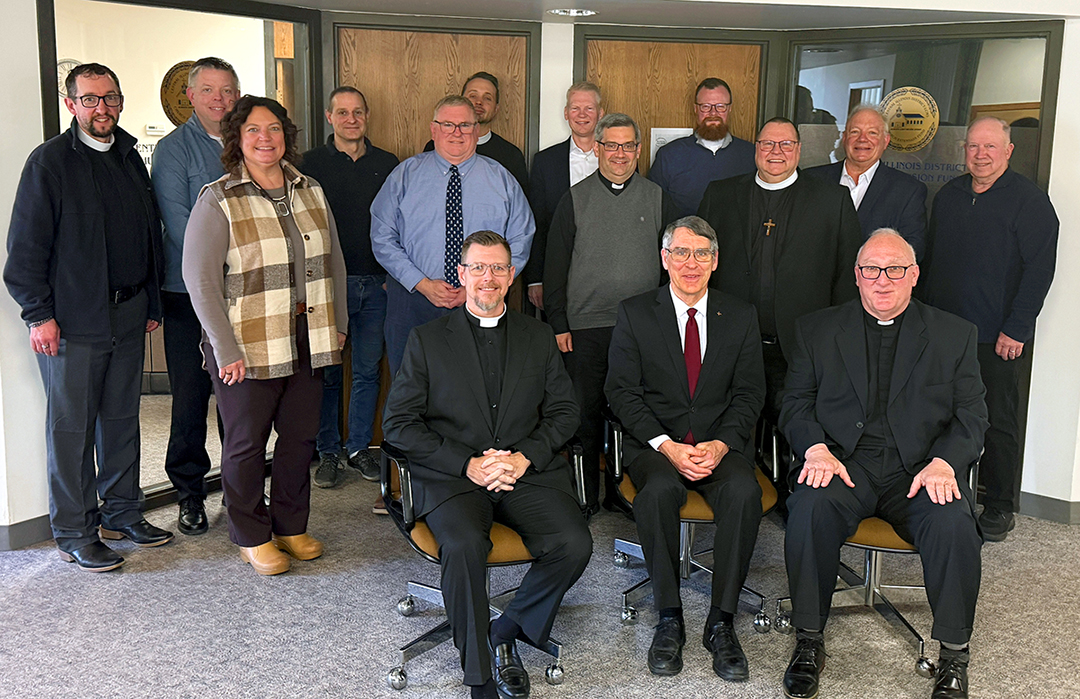(center) Rev. Mark Eddy, Zion, Taylor Ridge - District President
